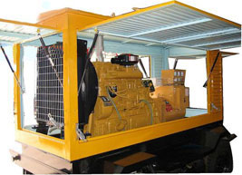 大厂柴油发电机组/移动柴油发电机组设计独具创新,机动性高、重心低、制动安全、制造精良、外形美观。 大厂拖车车架采用槽梁焊接成框架结构,节点选择合理、强度高、刚性好;同时装有钢板弹簧悬架结构;拖车采用高度可调节插销式牵引架,适用于各种高度牵引车;采用圆形钢管焊接直通式车轴,结构紧凑,安全可靠;车架四角设有机械式支撑装置,配备惯性行车制动、驻车制动和脱离应急制动,确保机组在各种状况下的安全;车架前端设有支撑轮,具备承受机组垂直载荷的功能的同时还具备导向功能;整车配备转向和刹车指示灯,同时装有尾灯标准插头